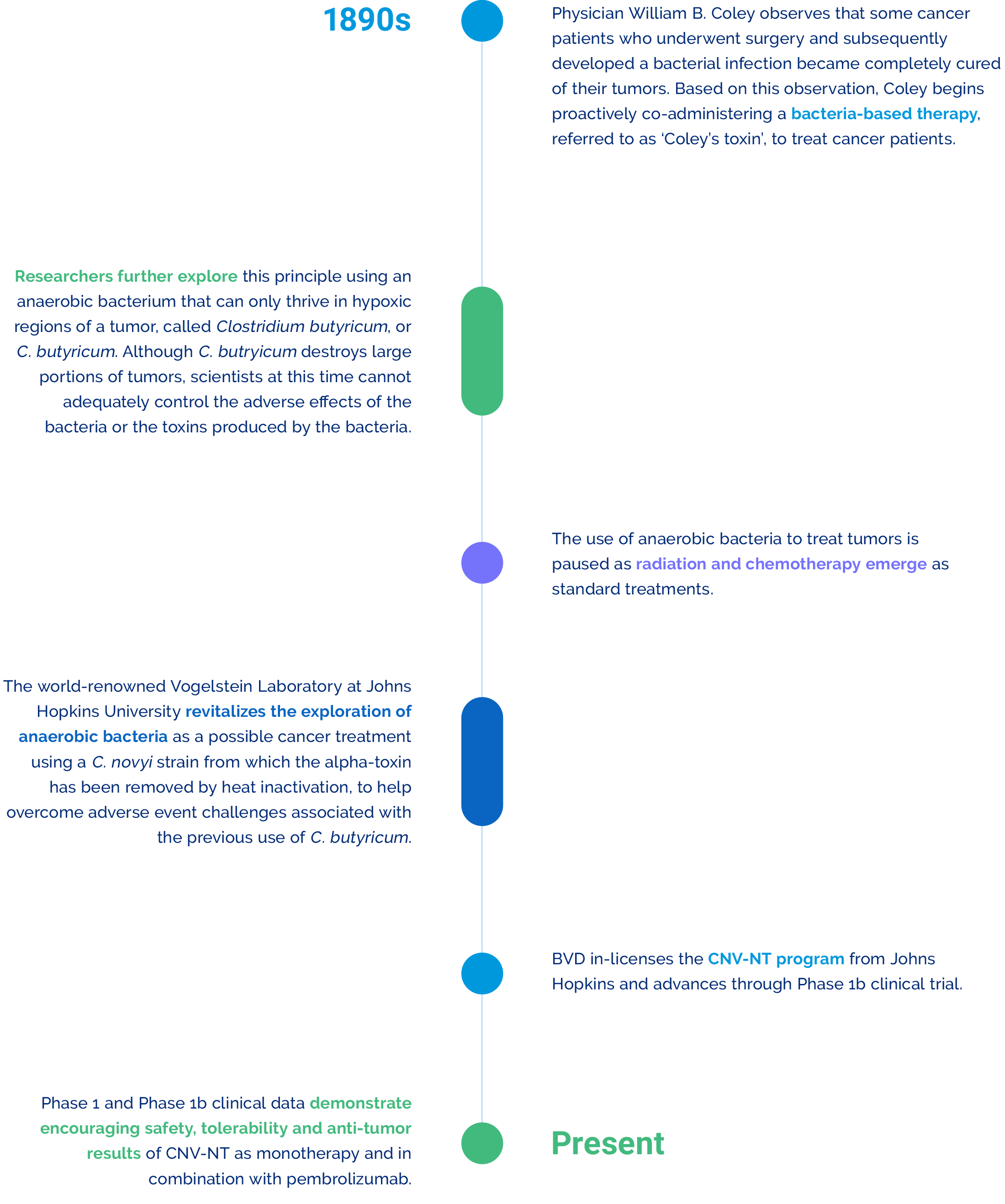With our CNV-NT program, we are revitalizing the promising prospect of using bacteria as a cancer-fighting modality, which is rooted in scientific history and supported by strong scientific rationale.